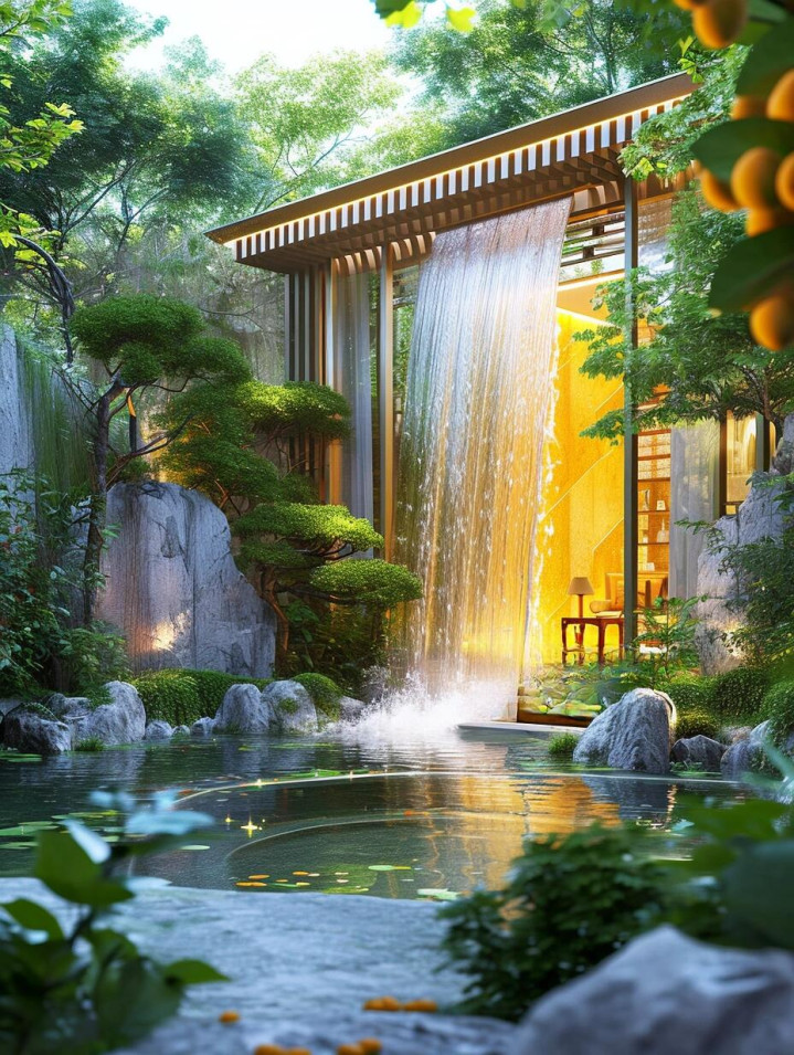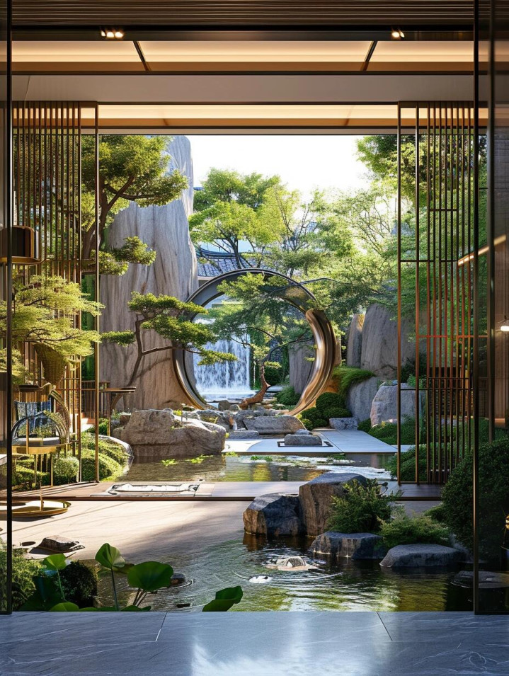 更令人心动的是,新中式庭院早已不是“老古董”,它正以环保与智能之名,大步走向未来!*设计师们不再满足于视觉美感,更将“可持续”刻入基因。大量使用可再生木材,雨水收集系统悄然灌溉绿植,智能照明随自然光线温柔调节...这院子自己就在呼吸。